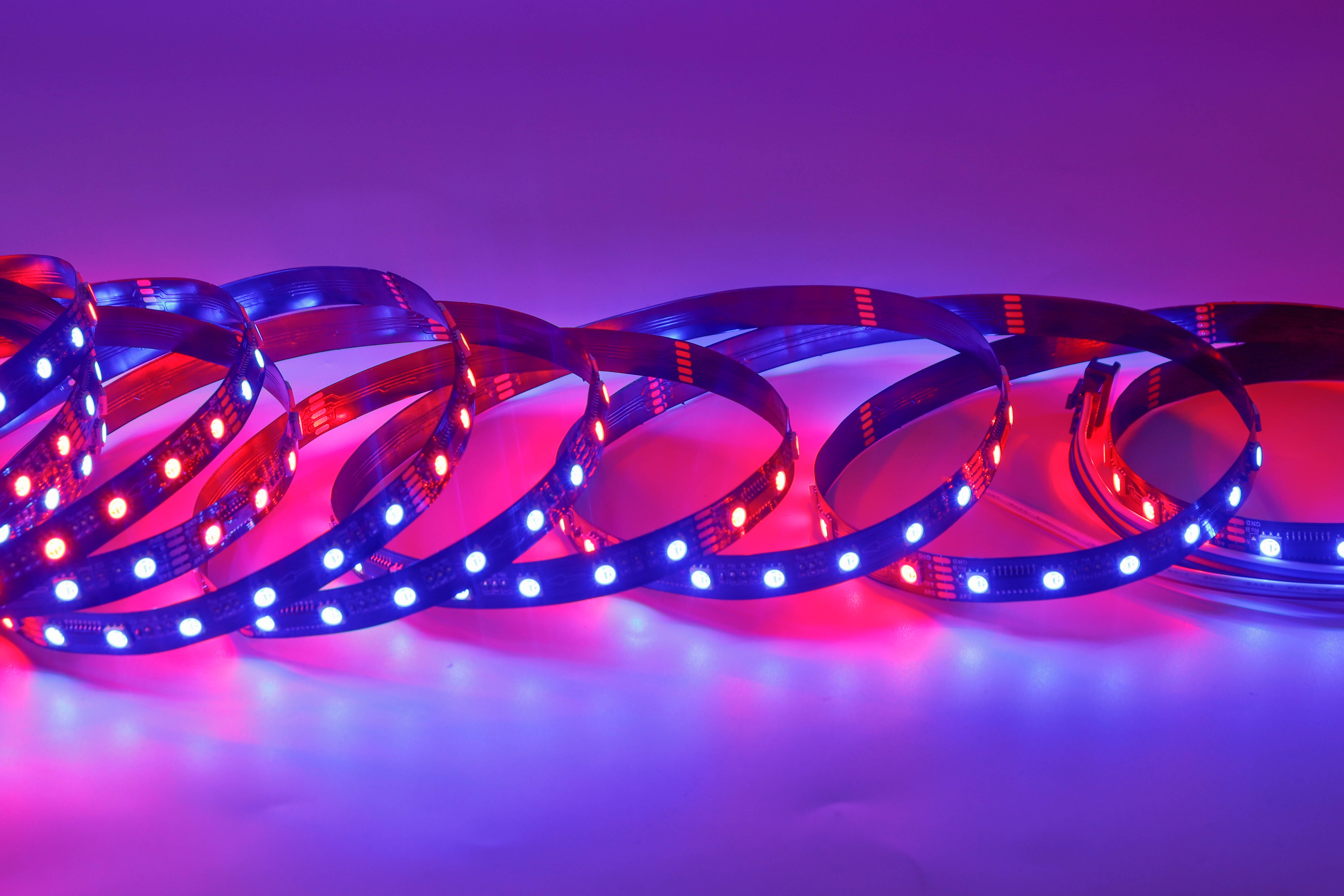 Led燈帶是指把LED組裝在帶狀的FPC(柔性線路板)或PCB硬板上,因其產(chǎn)品形狀象一條帶子一樣而得名。LED全彩燈條又名LED幻彩燈條,LED數(shù)碼燈條,?像素燈條,?英文名為:LED?pixel?strips,可以實現(xiàn)追逐,流水,幻彩,顯示效果等。因為使用壽命長(一般正常壽命在3~5萬小時),又非常節(jié)能和綠色環(huán)保而逐漸在各種裝飾行業(yè)中嶄露頭角。