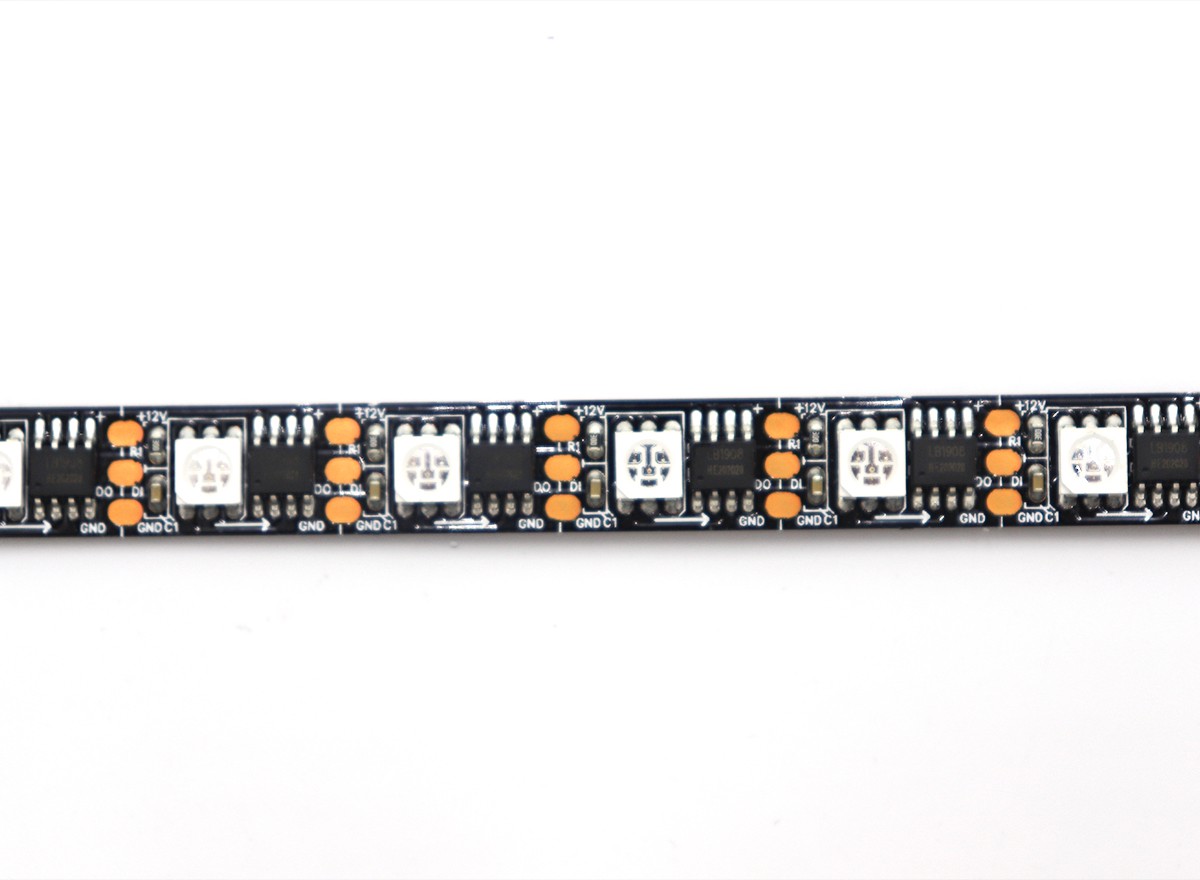 1、控制原理:一個IC控制1顆LED組成一個回路(一組),控制器通過控制IC對FPCB里面的電路進行控制,從而控制LED燈條變化不同的效果;如閃爍,追逐,跳變,順時針跑馬,逆時針跑馬,單色跑馬,變色跑馬,單顆追逐從頭到尾,流水,模擬閃電等;也可以根據(jù)客戶需要,自行編寫,編寫出所有想要的效果。