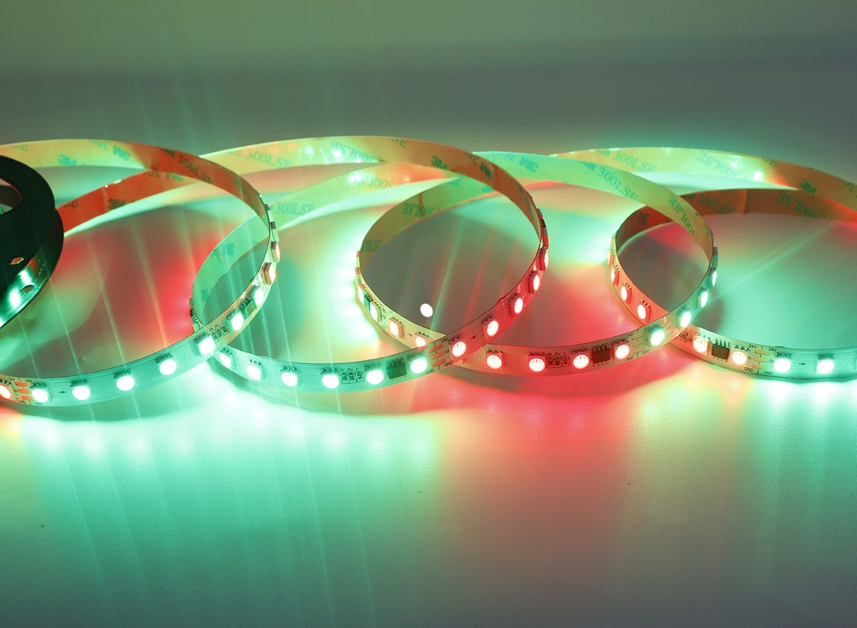 Led燈帶是指把LED組裝在帶狀的FPC(柔性線路板)或PCB硬板上,因其產(chǎn)品形狀象一條帶子一樣而得名。LED全彩燈條又名LED幻彩燈條,LED數(shù)碼燈條,?像素?zé)魲l,?英文名為:LED?pixel?strips,可以實現(xiàn)追逐,流水,幻彩,顯示效果等。因為使用壽命長(一般正常壽命在3~5萬小時),又非常節(jié)能和綠色環(huán)保而逐漸在各種裝飾行業(yè)中嶄露頭角。