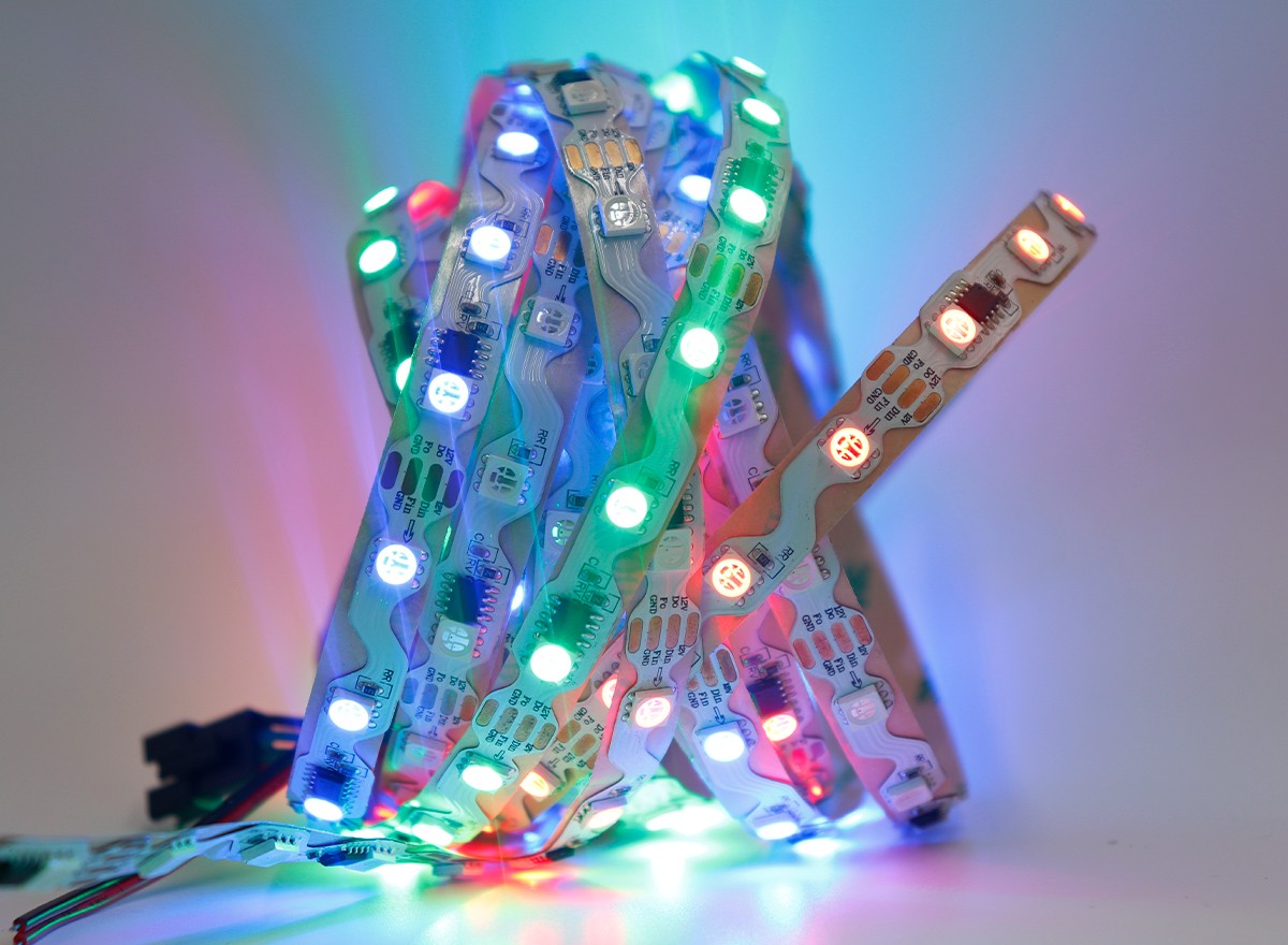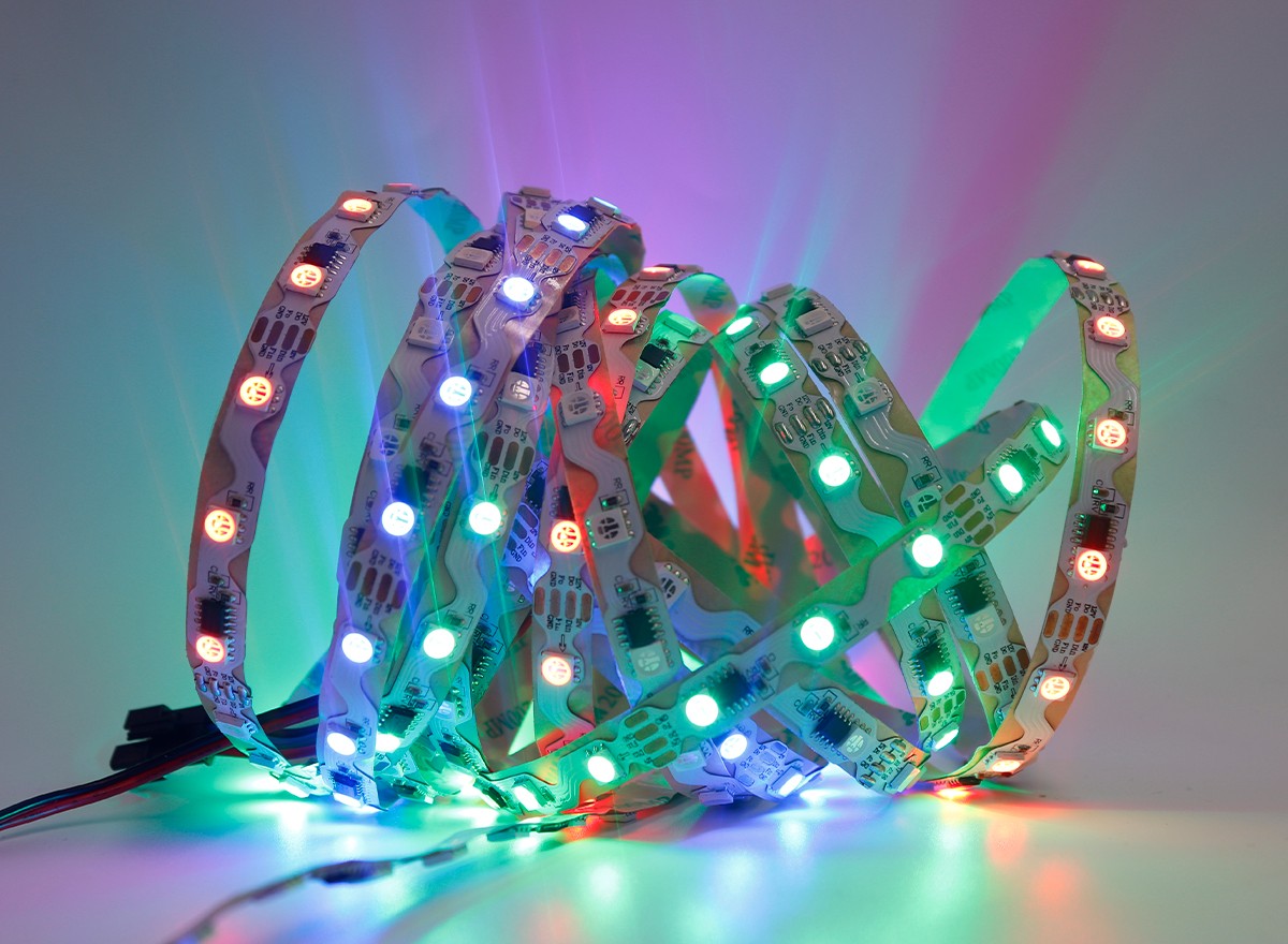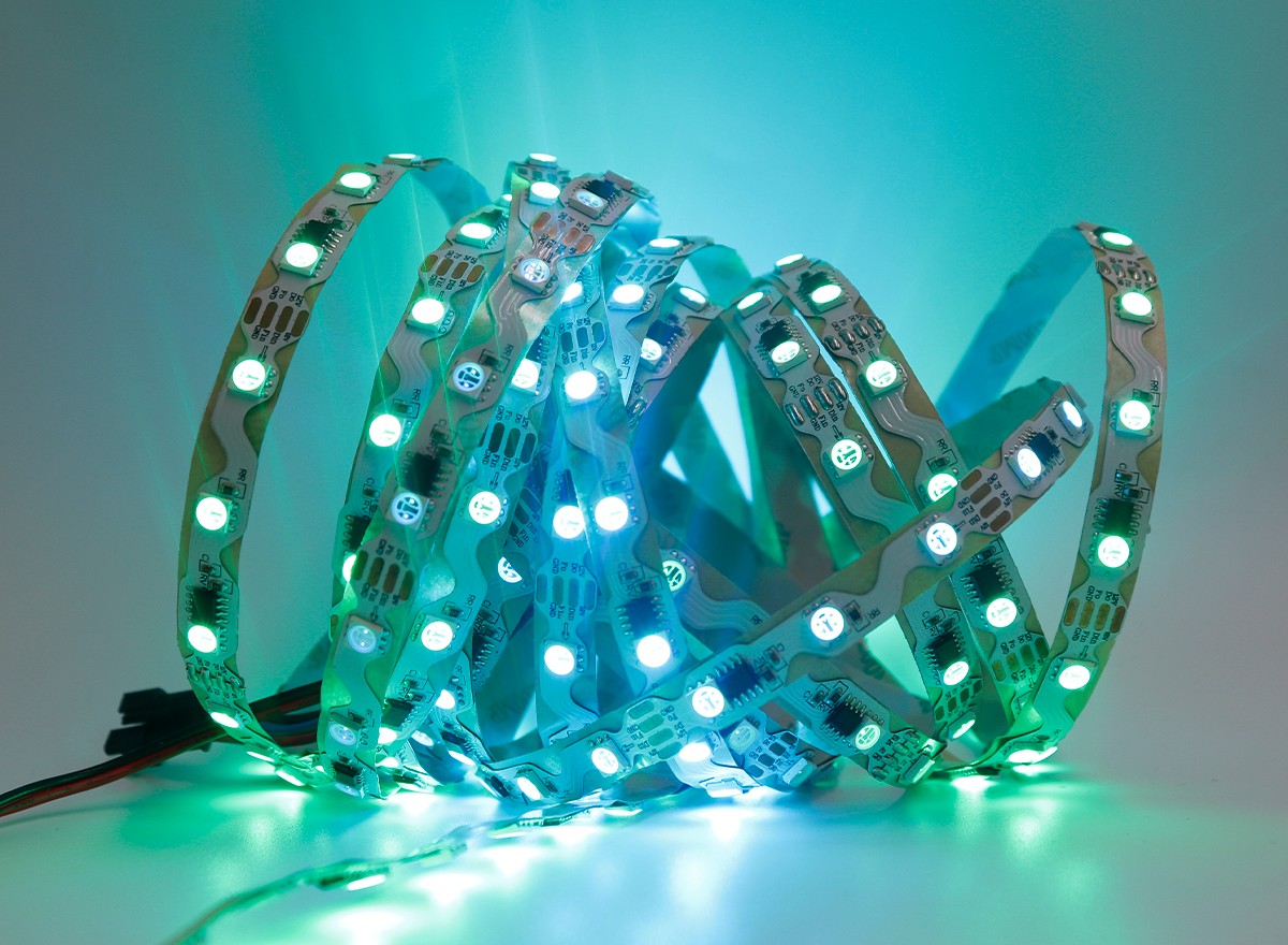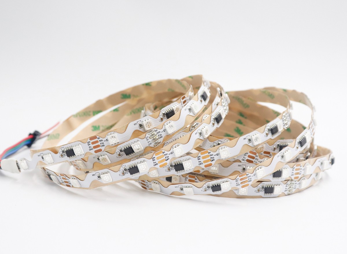 Led燈帶是指把LED組裝在帶狀的FPC(柔性線路板)或PCB硬板上,因其產(chǎn)品形狀象一條帶子一樣而得名。LED全彩燈條又名LED幻彩燈條,LED數(shù)碼燈條,?像素?zé)魲l,?英文名為:LED?pixel?strips,可以實(shí)現(xiàn)追逐,流水,幻彩,顯示效果等。因?yàn)槭褂脡勖L(zhǎng)(一般正常壽命在3~5萬小時(shí)),又非常節(jié)能和綠色環(huán)保而逐漸在各種裝飾行業(yè)中嶄露頭角。