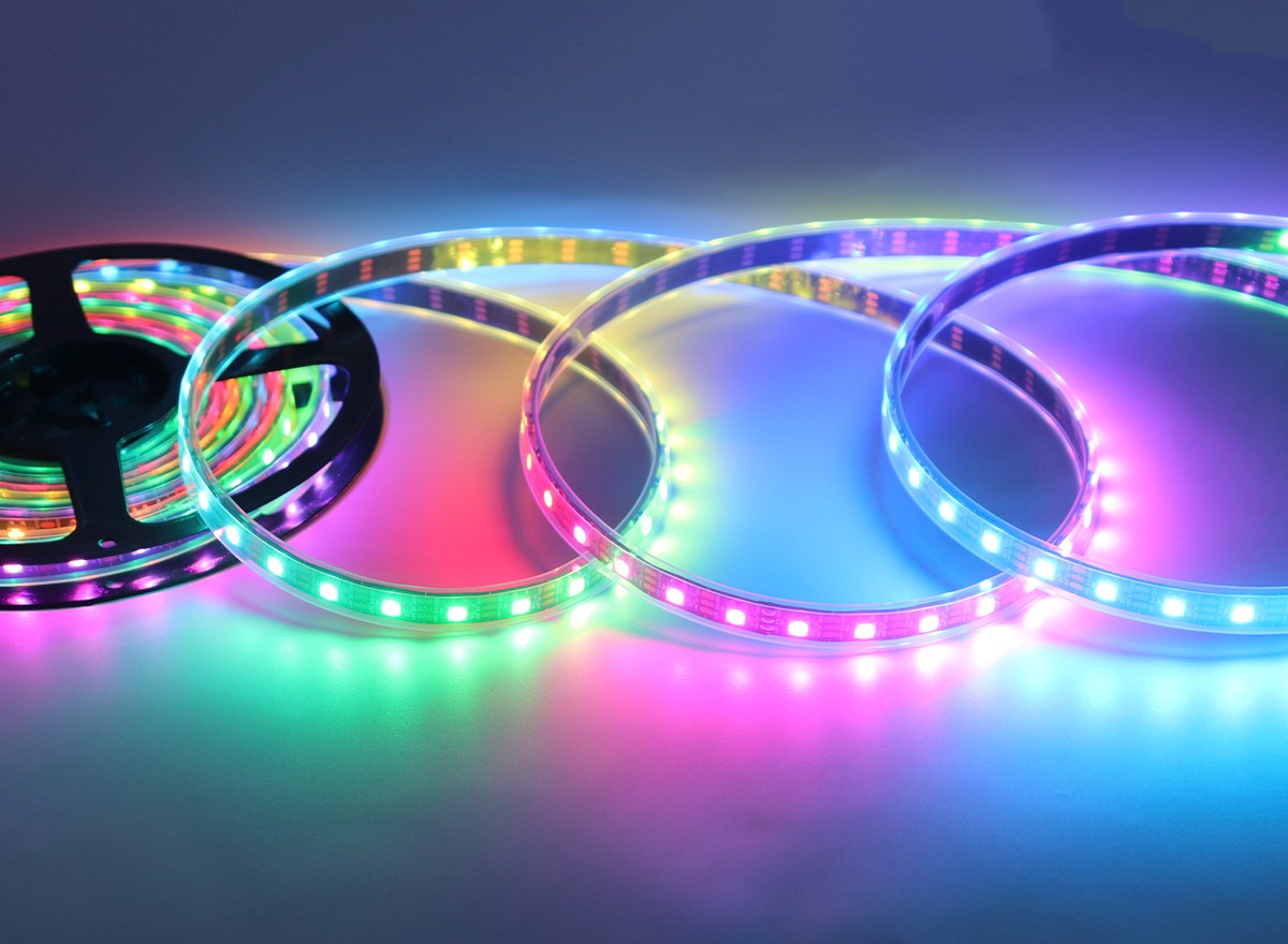 Led燈帶是指把LED組裝在帶狀的FPC(柔性線路板)或PCB硬板上,因其產(chǎn)品形狀象一條帶子一樣而得名。LED全彩燈條又名LED幻彩燈條,LED數(shù)碼燈條,?像素?zé)魲l,?英文名為:LED?pixel?strips,可以實(shí)現(xiàn)追逐,流水,幻彩,顯示效果等。因?yàn)槭褂脡勖L(一般正常壽命在3~5萬小時),又非常節(jié)能和綠色環(huán)保而逐漸在各種裝飾行業(yè)中嶄露頭角。