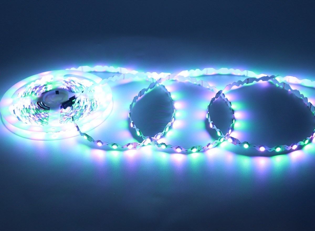 Led燈帶是指把LED組裝在帶狀的FPC(柔性線路板)或PCB硬板上,因其產(chǎn)品形狀象一條帶子一樣而得名。LED全彩燈條又名LED幻彩燈條,LED數(shù)碼燈條,?像素燈條,?英文名為:LED?pixel?strips,可以實現(xiàn)追逐,流水,幻彩,顯示效果等。因為使用壽命長(一般正常壽命在3~5萬小時),又非常節(jié)能和綠色環(huán)保而逐漸在各種裝飾行業(yè)中嶄露頭角。