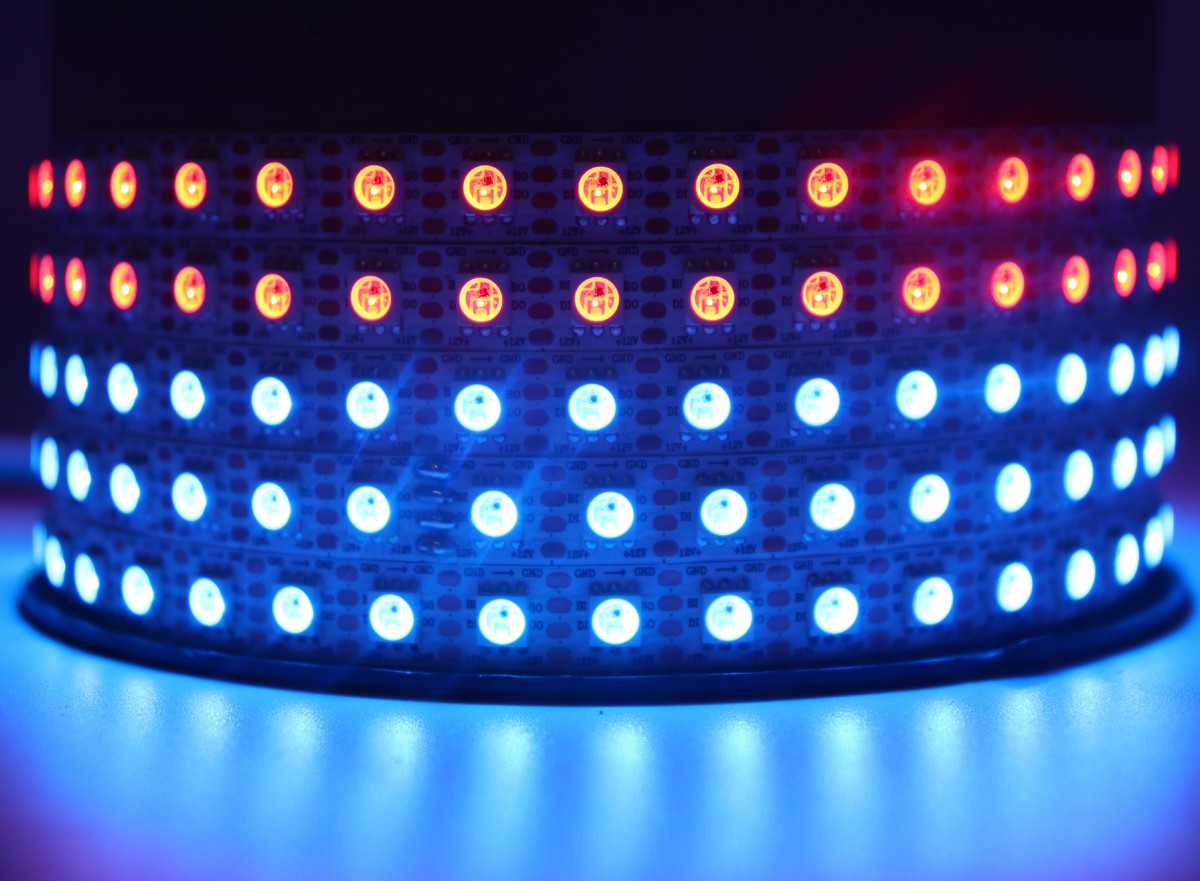Led燈帶是指把LED組裝在帶狀的FPC(柔性線路板)或PCB硬板上,因其產(chǎn)品形狀象一條帶子一樣而得名。LED全彩燈條又名LED幻彩燈條,LED數(shù)碼燈條,?像素?zé)魲l,?英文名為:LED?pixel?strips,可以實(shí)現(xiàn)追逐,流水,幻彩,顯示效果等。因?yàn)槭褂脡勖L(一般正常壽命在3~5萬小時),又非常節(jié)能和綠色環(huán)保而逐漸在各種裝飾行業(yè)中嶄露頭角。