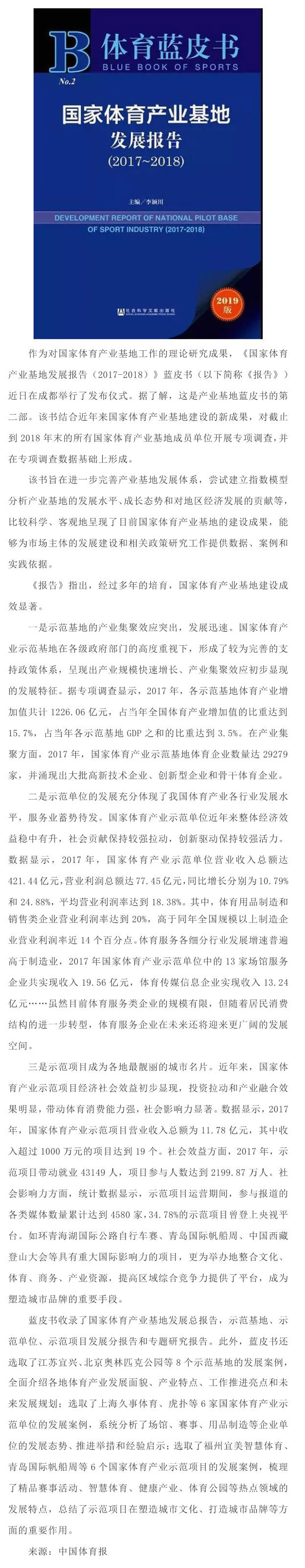 新發(fā)布的產(chǎn)業(yè)基地藍(lán)皮書顯示 國(guó)家體育產(chǎn)業(yè)基地發(fā)展成效顯著